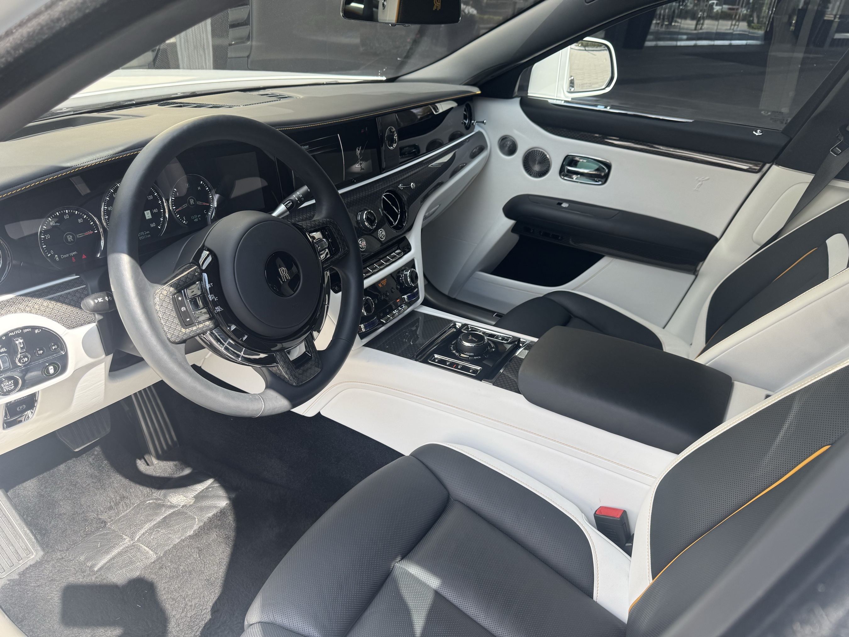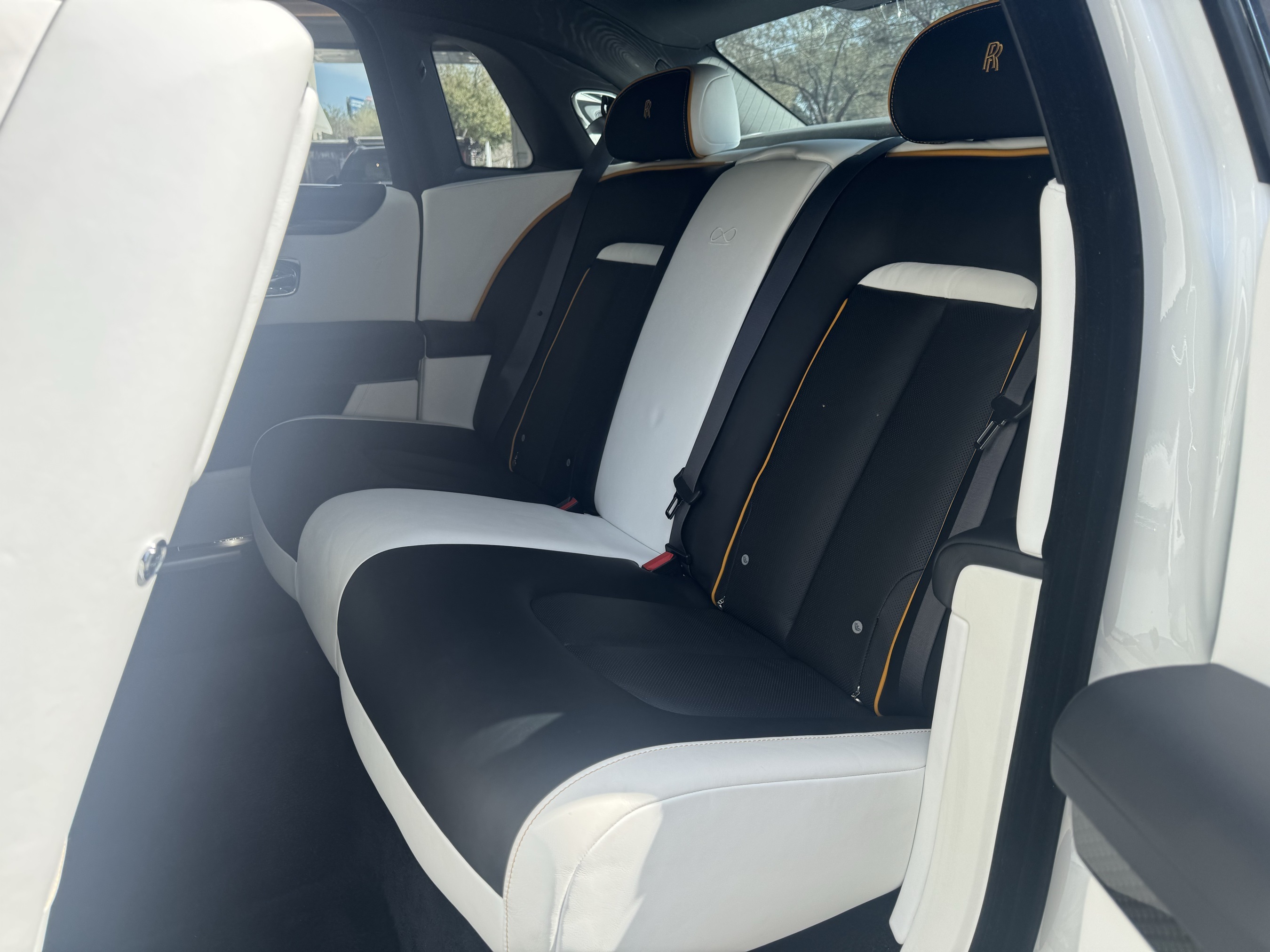 2023 Rolls-Royce Black Badge Ghost presented by Rolls-Royce Motor Cars Houston. Arctic White Exterior with Arctic White and Black Interior, this Ghost features Forged Yellow Coachline, Pinstripe Colour applied to Wheel Centre, Painted Brake Calipers in Forged Yellow, Lambswool Floormats, Rolls-Royce Bespoke Audio, Rear Theatre Configuration, Contrast Seat Piping in Forged Yellow, Extended Veneer - High Gloss, Spirit Of Ecstasy on Doors, Dynamic Bespoke Clock, Illuminated Fascia, Picnic Tables and Umbrella Canopy in Black.This vehicle has already received our premium Ceramic Coating and Paint Correction treatment - an exclusive package professionally applied and included with your purchaseAbout Post Oak Motor Cars:Post Oak Motor Cars, a Fertitta Automotive Company, proudly represents Bentley, Rolls-Royce Motor Cars Houston, Bugatti, Karma, Lotus, Zenvo, Brabus, Hennessey, and Vintage Modern. Located in the prestigious Post Oak Complex in Uptown Houston, our flagship showroom offers an immersive luxury experience - surrounded by fine dining, designer fashion, luxury spa, and elegant accommodations. We also welcome you to our Lotus of The Woodlands showroom, located at 1501 Lake Robbins Drive. Our state-of-the-art service center and accessories boutique are supported by Certified Brand Representatives who can assist with: