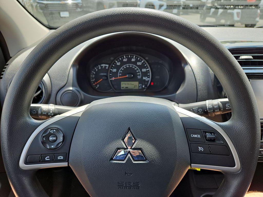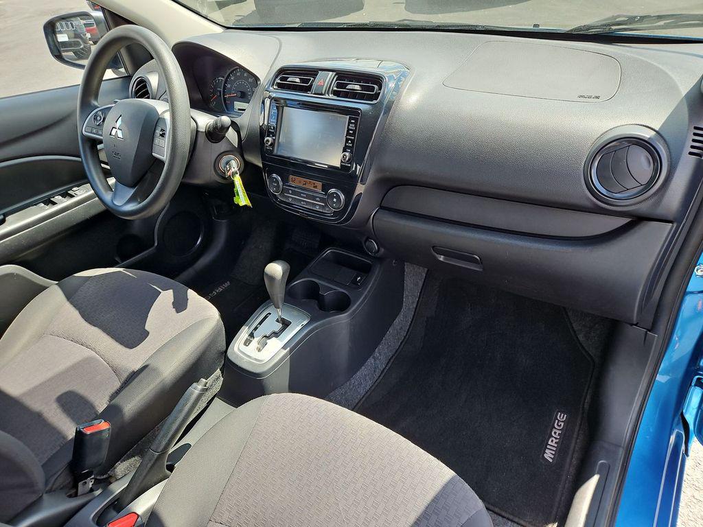 Sapphire Blue Metallic 2020 Mitsubishi Mirage ES FWD CVT 1.2L 3-Cylinder DOHC MIVEC 4 Speakers, ABS brakes, Air Conditioning, AM/FM radio, Automatic temperature control, Brake assist, Bumpers: body-color, Cloth Fabric Seat Trim, Driver door bin, Driver vanity mirror, Dual front impact airbags, Dual front side impact airbags, Electronic Stability Control, Exterior Parking Camera Rear, Front anti-roll bar, Front Bucket Seats, Front reading lights, Front wheel independent suspension, Illuminated entry, Knee airbag, Low tire pressure warning, Occupant sensing airbag, Overhead airbag, Panic alarm, Passenger door bin, Power door mirrors, Power steering, Power windows, Radio: 7"" Display Audio, Rear window defroster, Rear window wiper, Remote keyless entry, Speed control, Split folding rear seat, Spoiler, Steering wheel mounted audio controls, Tachometer, Tilt steering wheel, Traction control, Trip computer, Variably intermittent wipers, Wheels: 14"" Steel w/Wheel Covers.Odometer is 5426 miles below market average!