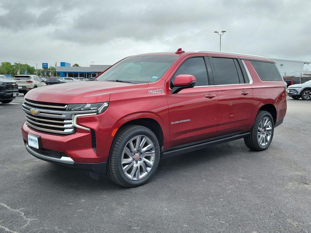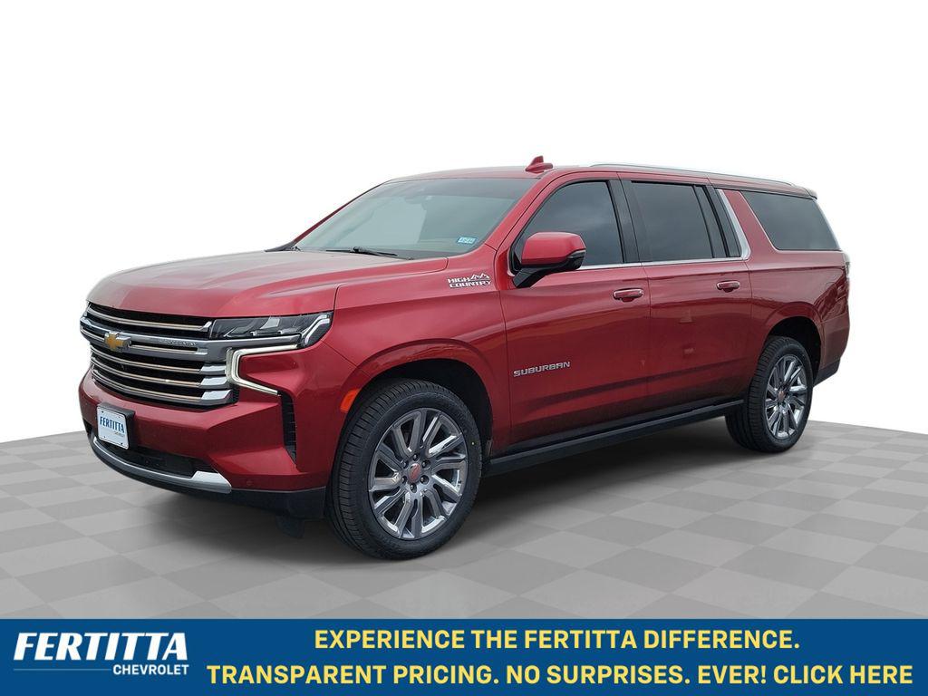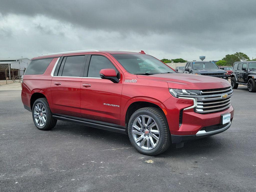 Cherry Red Tintcoat 2022 Chevrolet Suburban High Country 4WD 10-Speed Automatic with Overdrive EcoTec3 6.2L V8 10 Speakers, 15"" Diagonal Multi-Color Head-Up Display, 1st & 2nd Row Color-Keyed Carpeted Floor Mats, 2-Speed Active Electronic AutoTrac Transfer Case, 3.23 Rear Axle Ratio, 3rd Row 60/40 Power-Folding Split-Bench, 3rd row seats: split-bench, 4-Wheel Disc Brakes, ABS brakes, Adaptive suspension, Advanced Trailering Package, Air Conditioning, Alloy wheels, AM/FM radio: SiriusXM with 360L, Apple CarPlay/Android Auto, Auto High-beam Headlights, Auto-dimming door mirrors, Auto-dimming Rear-View mirror, Auto-leveling suspension, Automatic Stop/Start, Automatic temperature control, Bose 10-Speaker Surround w/CenterPoint, Brake assist, Bright Front & Rear Door Sill Plates, Bumpers: body-color, Chrome Door Handles w/Body-Color Strip, Color-Keyed Carpeting Floor Covering, Compass, Delay-off headlights, Driver & Front Outboard Passenger Airbags, Driver door bin, Driver vanity mirror, Dual Exhaust System, Dual front impact airbags, Dual front side impact airbags, Electronic Stability Control, Emergency communication system: OnStar and Chevrolet connected services capable, Enhanced Driver Information Center, Extra Capacity Cooling System, Floor Console, Four wheel independent suspension, Front & Rear Park Assist, Front anti-roll bar, Front Bucket Seats, Front Center Armrest, Front dual zone A/C, Front reading lights, Fully automatic headlights, Garage door transmitter, Hands-Free Rear Power Programmable Liftgate, HD Surround Vision, Heads-Up Display, Heated & Ventilated Driver & Front Passenger Seats, Heated 2nd Row Outboard Seats, Heated door mirrors, Heated Driver & Front Passenger Seats, Heated front seats, Heated rear seats, Heated Steering Wheel, Heated steering wheel, Hill Descent Control, Hitch Guidance w/Hitch View, Illuminated entry, Infotainment Display, Inside Rearview Auto-Dimming Rear Camera Mirror, Integrated Trailer Brake Controller, Lane Change Alert w/Side Blind Zone Alert, Leather steering wheel, Leather-Wrapped Steering Wheel, LED Daytime Running Lamps, License Plate Front Mounting Package, Low tire pressure warning, Magnetic Ride Control Suspension, Max Trailering Package, Memory seat, Memory Settings, Navigation System, Not Equipped w/4-Way Driver & Fr Pass Pwr Lumbar, Not Equipped w/Steering Column Lock, Occupant sensing airbag, Outside Heated Power-Adjustable Mirrors, Outside temperature display, Overhead airbag, Overhead console, Panic alarm, Passenger door bin, Passenger vanity mirror, Perforated Leather Seating Surfaces, Power door mirrors, Power driver seat, Power Liftgate, Power passenger seat, Power Release 2nd Row Bucket Seats, Power steering, Power Tilt & Telescopic Steering Column, Power windows, Power-Retractable Assist Steps, Preferred Equipment Group 3LZ, Premium audio system: Chevrolet Infotainment 3 Premium, Radio: Chevrolet Infotainment 3 Premium System, Rain sensing wipers, Rear air conditioning, Rear anti-roll bar, Rear Camera Mirror Washer, Rear Cross Traffic Alert, Rear Pedestrian Alert, Rear reading lights, Rear window defroster, Rear window wiper, Remote keyless entry, Remote Start, Roof rack: rails only, Safety Alert Seat, Security system, SiriusXM Radio w/360L, Smart Trailer Integration Indicator, Speed control, Speed-sensing steering, Split folding rear seat, Spoiler, Start/Stop System Disable Button, Steering wheel memory, Steering wheel mounted audio controls, Tachometer, Telescoping steering wheel, Tilt steering wheel, Traction control, Trailer Side Blind Zone Alert, Trip computer, Turn signal indicator mirrors, Universal Home Remote, Variably intermittent wipers, Ventilated front seats, Voltmeter, Wheel Locks (Set of 4) (LPO), Wheels: 22"" x 9"" Sterling Silver Premium Painted, Wireless Charging.Recent Arrival!