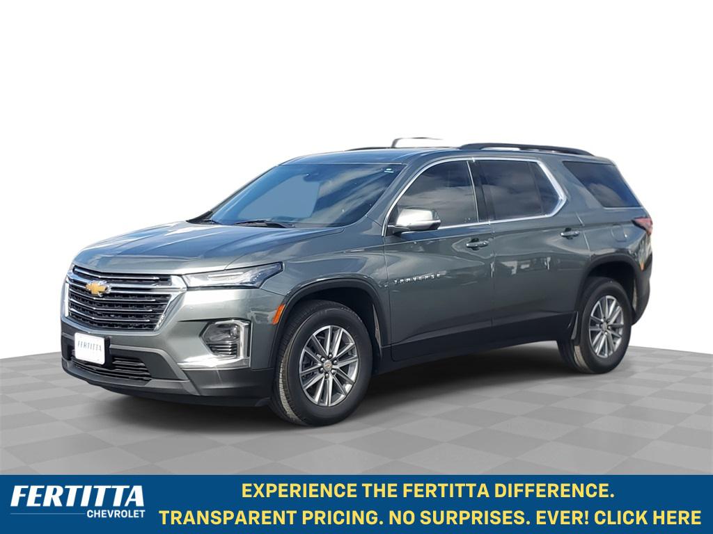 Silver Sage Metallic 2022 Chevrolet Traverse LT 1LT FWD 9-Speed Automatic 3.6L V6 SIDI VVT 2-Way Manual Front Passenger Seat Adjuster, 3.49 Axle Ratio, 3rd row seats: split-bench, 4-Wheel Disc Brakes, 4.2"" Multi-Color Enhanced Driver Instrument Display, 6 Speakers, 6-Speaker Audio System Feature, 8-Way Power Driver Seat Adjuster, ABS brakes, Air Conditioning, Alloy wheels, AM/FM radio: SiriusXM, Apple CarPlay/Android Auto, Auto High-beam Headlights, Automatic temperature control, Black Roof Rails, Brake assist, Bumpers: body-color, Compass, Convenience & Driver Confidence Package, Delay-off headlights, Driver door bin, Driver vanity mirror, Dual front impact airbags, Dual front side impact airbags, Electronic Stability Control, Emergency communication system: OnStar Guidance, Exterior Parking Camera Rear, Four wheel independent suspension, Front anti-roll bar, Front Bucket Seats, Front Center Armrest, Front dual zone A/C, Front License Plate Bracket Mounting Package, Front reading lights, Fully automatic headlights, Heated door mirrors, Heated Driver & Front Passenger Seats, Illuminated entry, Leather steering wheel, Low tire pressure warning, Not Equipped w/Dr & Fr Pass Heated or Ventilated Seats, Not Equipped w/Rear Park Assist, Occupant sensing airbag, Outside temperature display, Overhead airbag, Overhead console, Panic alarm, Passenger door bin, Passenger vanity mirror, Power door mirrors, Power Driver Lumbar Control, Power driver seat, Power steering, Power windows, Preferred Equipment Group 1LT, Premium Cloth Seat Trim, Radio data system, Radio: Chevrolet Infotainment 3 Plus System, Radio: Chevrolet Infotainment System AM/FM Stereo, Rear air conditioning, Rear anti-roll bar, Rear Park Assist w/Audible Warning, Rear Power Liftgate, Rear reading lights, Rear window defroster, Rear window wiper, Remote keyless entry, Remote Start, Roof rack: rails only, Security system, SiriusXM Radio, SiriusXM w/360L, Speed control, Speed-sensing steering, Spoiler, Steering wheel mounted audio controls, Tachometer, Telescoping steering wheel, Tilt steering wheel, Traction control, Trip computer, Turn signal indicator mirrors, Universal Home Remote, Variably intermittent wipers, Voltmeter, Wheels: 18"" Bright Silver-Painted Aluminum.Odometer is 3742 miles below market average! 18/27 City/Highway MPG