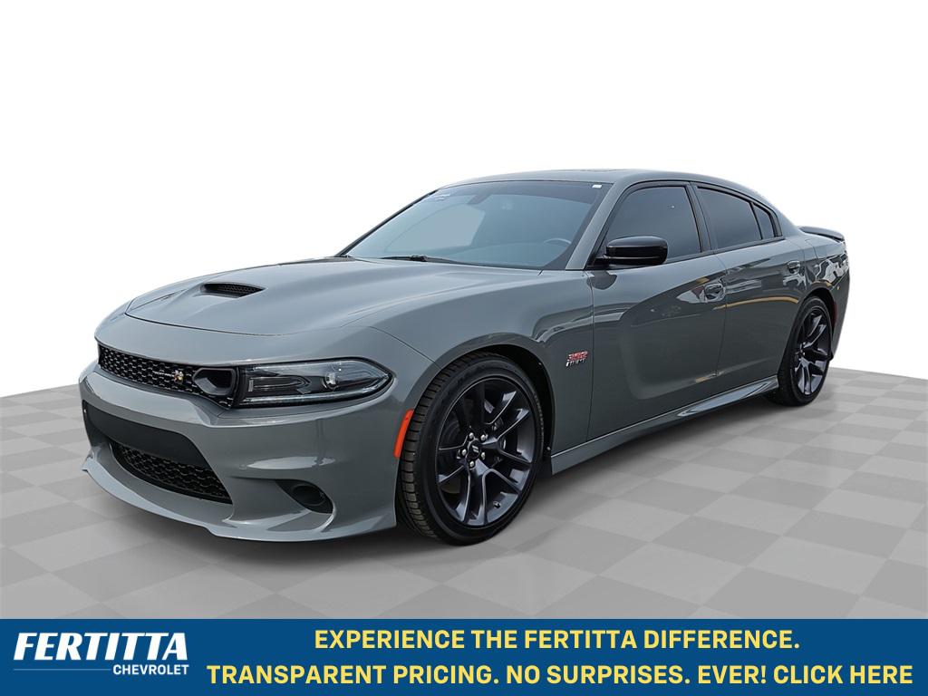 Certified. Destroyer Gray Clearcoat 2023 Dodge Charger R/T Scat Pack RWD 8-Speed Automatic SRT HEMI 6.4L V8 MDS Bravo Certified Certified, Black Cloth, 1-Yr SiriusXM Guardian Trial, 2-Piece Shark Fin Antenna, 4-Wheel Disc Brakes, 4G LTE Wi-Fi Hot Spot, 5-Year SiriusXM Traffic Service, 5-Year SiriusXM Travel Link Service, 6 Speakers, 8.4"" Touchscreen Display, ABS brakes, Air Conditioning, Alloy wheels, AM/FM radio: SiriusXM, Anti-whiplash front head restraints, Apple CarPlay, Apple CarPlay/Android Auto, Auto-dimming Rear-View mirror, Automatic temperature control, Brake assist, Bumpers: body-color, Cloth Performance Seats w/Heat, Compass, Compass Gauge, Delay-off headlights, Driver door bin, Driver vanity mirror, Dual front impact airbags, Dual front side impact airbags, Electronic Stability Control, Emergency communication system: SiriusXM Guardian, For Details, Visit DriveUconnect.com, Four wheel independent suspension, Front anti-roll bar, Front Bucket Seats, Front Center Armrest, Front dual zone A/C, Front fog lights, Front License Plate Bracket, Front reading lights, Fully automatic headlights, Garage door transmitter: HomeLink, Google Android Auto, GPS Antenna Input, GPS Navigation, HD Radio, Heated door mirrors, Heated Front Seats, Heated front seats, Heated steering wheel, Illuminated entry, Integrated Center Stack Radio, Integrated Voice Command w/Bluetooth, Knee airbag, Leather Shift Knob, Low tire pressure warning, Media Hub (2 USB, AUX), Navigation & Travel Group, Occupant sensing airbag, Outside temperature display, Overhead airbag, Overhead console, Panic alarm, ParkView Rear Back-Up Camera, Passenger door bin, Passenger vanity mirror, Power 2-Way Driver Lumbar Adjust, Power door mirrors, Power driver seat, Power steering, Power Sunroof, Power windows, Quick Order Package 21W Scat Pack, Radio: Uconnect 4C Nav w/8.4"" Display, Radio: Uconnect 4C w/8.4"" Display, Rear anti-roll bar, Rear Armrest w/Cupholder Seat, Rear reading lights, Rear seat center armrest, Rear window defroster, Remote keyless entry, Security system, SiriusXM Traffic Plus, SiriusXM Travel Link, Speed control, Speed-Sensitive Wipers, Split folding rear seat, Spoiler, Sport steering wheel, Steering wheel mounted audio controls, Tachometer, Telescoping steering wheel, Tilt steering wheel, Traction control, Trip computer, USB Host Flip, Variably intermittent wipers, Wheels: 20"" x 9"" Lo Gloss Granite Crystal, Black Cloth.Certification Program Details: