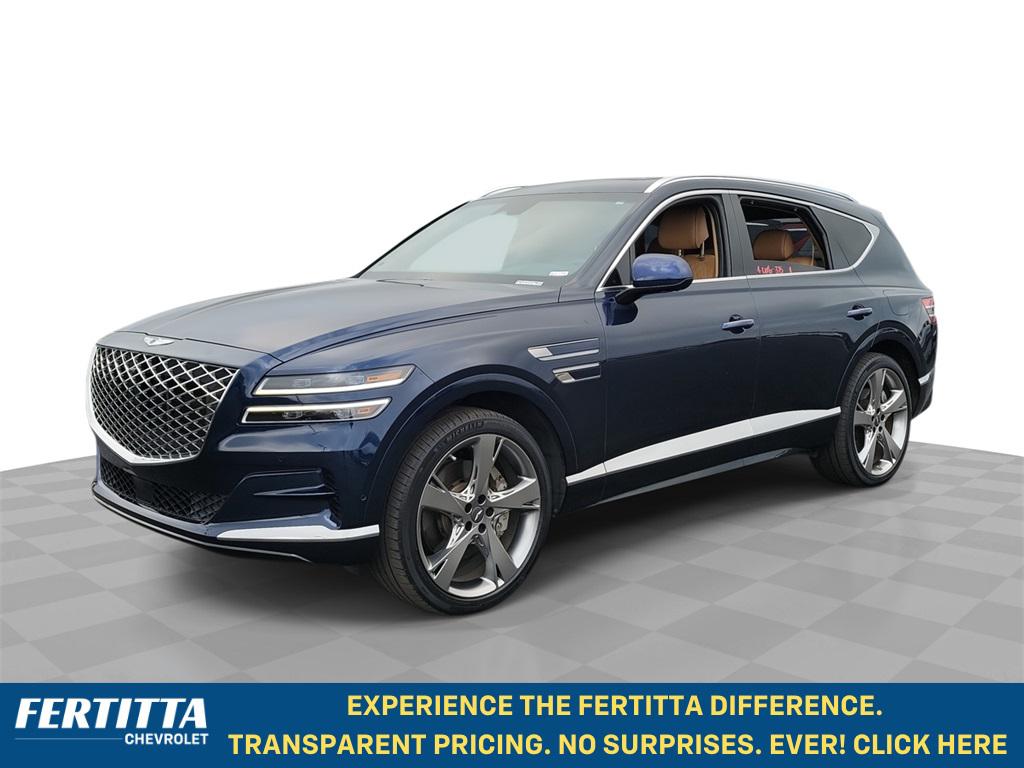 Adriatic Blue 2023 Genesis GV80 3.5T AWD 8-Speed Automatic 3.5L DOHC 12 Speakers, 12.3"" 3D Digital Instrument Cluster, 2nd Row Vanity Mirrors, 3-Zone Climate Control, 3.909 Axle Ratio, 4-Wheel Disc Brakes, ABS brakes, Adaptive suspension, Air Conditioning, Alloy wheels, AM/FM radio: SiriusXM, Android Auto & Apple CarPlay, Anti-whiplash front head restraints, Auto High-beam Headlights, Auto tilt-away steering wheel, Auto-dimming door mirrors, Auto-dimming Rear-View mirror, Automatic temperature control, Blind-Spot View Monitor, Brake assist, Bumpers: body-color, Compass, Delay-off headlights, Driver door bin, Driver vanity mirror, Dual front impact airbags, Dual front side impact airbags, Electronic Limited Slip Differential, Electronic Stability Control, Emergency communication system: Genesis Connected Services, Ergo Motion Driver Seat, Exterior Parking Camera Rear, First Aid Kit, Forward Attention Warning, Four wheel independent suspension, Front anti-roll bar, Front Bucket Seats, Front Center Armrest, Front dual zone A/C, Front reading lights, Fully automatic headlights, Garage door transmitter: HomeLink, Genuine wood console insert, Genuine wood dashboard insert, Genuine wood door panel insert, Head-Up Display, Heated & Ventilated Front Bucket Seats, Heated 2nd Row Seats, Heated door mirrors, Heated front seats, Heated steering wheel, Illuminated entry, Knee airbag, Leather Seating Surfaces, Leather steering wheel, Leatherette Seating Surfaces, Low tire pressure warning, Memory seat, Nappa Leather Seating Surfaces, Navigation System, Occupant sensing airbag, Option Group 06, Outside temperature display, Overhead airbag, Overhead console, Panic alarm, Parking Collision-Avoidance Assist, Passenger door bin, Passenger vanity mirror, Power 2nd Row Outboard Seats, Power Cushion Extension & Bolster, Power Door Closure, Power door mirrors, Power driver seat, Power Liftgate, Power moonroof, Power passenger seat, Power Rear Door Shades, Power steering, Power windows, Prestige Package, Radio data system, Radio: AM/FM/SiriusXM/HD Audio System, Radio: AM/FM/SiriusXM/HD Lexicon Prem Audio System, Rain sensing wipers, Rear air conditioning, Rear anti-roll bar, Rear reading lights, Rear seat center armrest, Rear side impact airbag, Rear window defroster, Rear window wiper, Remote keyless entry, Remote Smart Parking Assist, Road Active Noise Control, Security system, Speed control, Speed-sensing steering, Speed-Sensitive Wipers, Split folding rear seat, Spoiler, Steering wheel memory, Steering wheel mounted audio controls, Suede Headliner, Surround View Monitor, Tachometer, Telescoping steering wheel, Tilt steering wheel, Traction control, Trip computer, Turn signal indicator mirrors, Variably intermittent wipers, Ventilated 2nd Row Outboard Seats, Ventilated front seats, Wheel Locks, Wheels: 20"" x 8.5J Medium Metallic Gray Alloy, Wheels: 22"" x 9.5J Alloy.Recent Arrival! Odometer is 10519 miles below market average!