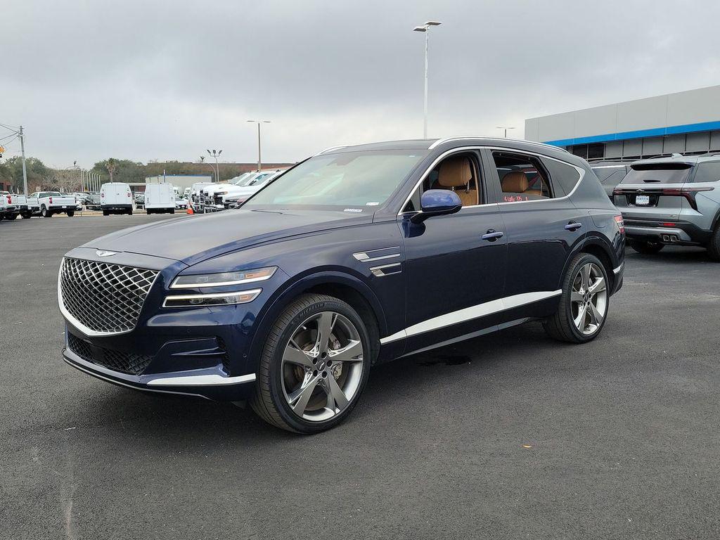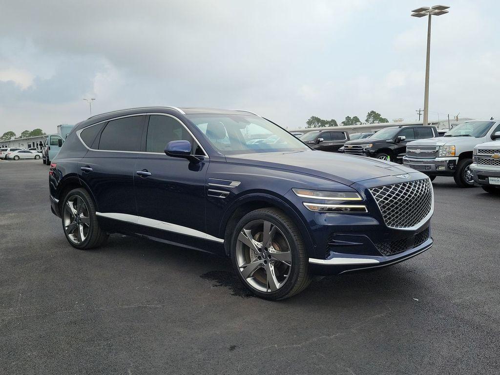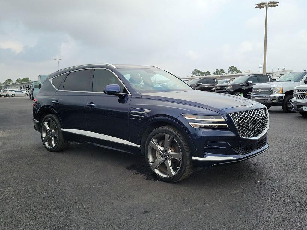 Adriatic Blue 2023 Genesis GV80 3.5T AWD 8-Speed Automatic 3.5L DOHC 12 Speakers, 12.3"" 3D Digital Instrument Cluster, 2nd Row Vanity Mirrors, 3-Zone Climate Control, 3.909 Axle Ratio, 4-Wheel Disc Brakes, ABS brakes, Adaptive suspension, Air Conditioning, Alloy wheels, AM/FM radio: SiriusXM, Android Auto & Apple CarPlay, Anti-whiplash front head restraints, Auto High-beam Headlights, Auto tilt-away steering wheel, Auto-dimming door mirrors, Auto-dimming Rear-View mirror, Automatic temperature control, Blind-Spot View Monitor, Brake assist, Bumpers: body-color, Compass, Delay-off headlights, Driver door bin, Driver vanity mirror, Dual front impact airbags, Dual front side impact airbags, Electronic Limited Slip Differential, Electronic Stability Control, Emergency communication system: Genesis Connected Services, Ergo Motion Driver Seat, Exterior Parking Camera Rear, First Aid Kit, Forward Attention Warning, Four wheel independent suspension, Front anti-roll bar, Front Bucket Seats, Front Center Armrest, Front dual zone A/C, Front reading lights, Fully automatic headlights, Garage door transmitter: HomeLink, Genuine wood console insert, Genuine wood dashboard insert, Genuine wood door panel insert, Head-Up Display, Heated & Ventilated Front Bucket Seats, Heated 2nd Row Seats, Heated door mirrors, Heated front seats, Heated steering wheel, Illuminated entry, Knee airbag, Leather Seating Surfaces, Leather steering wheel, Leatherette Seating Surfaces, Low tire pressure warning, Memory seat, Nappa Leather Seating Surfaces, Navigation System, Occupant sensing airbag, Option Group 06, Outside temperature display, Overhead airbag, Overhead console, Panic alarm, Parking Collision-Avoidance Assist, Passenger door bin, Passenger vanity mirror, Power 2nd Row Outboard Seats, Power Cushion Extension & Bolster, Power Door Closure, Power door mirrors, Power driver seat, Power Liftgate, Power moonroof, Power passenger seat, Power Rear Door Shades, Power steering, Power windows, Prestige Package, Radio data system, Radio: AM/FM/SiriusXM/HD Audio System, Radio: AM/FM/SiriusXM/HD Lexicon Prem Audio System, Rain sensing wipers, Rear air conditioning, Rear anti-roll bar, Rear reading lights, Rear seat center armrest, Rear side impact airbag, Rear window defroster, Rear window wiper, Remote keyless entry, Remote Smart Parking Assist, Road Active Noise Control, Security system, Speed control, Speed-sensing steering, Speed-Sensitive Wipers, Split folding rear seat, Spoiler, Steering wheel memory, Steering wheel mounted audio controls, Suede Headliner, Surround View Monitor, Tachometer, Telescoping steering wheel, Tilt steering wheel, Traction control, Trip computer, Turn signal indicator mirrors, Variably intermittent wipers, Ventilated 2nd Row Outboard Seats, Ventilated front seats, Wheel Locks, Wheels: 20"" x 8.5J Medium Metallic Gray Alloy, Wheels: 22"" x 9.5J Alloy.Odometer is 7783 miles below market average!