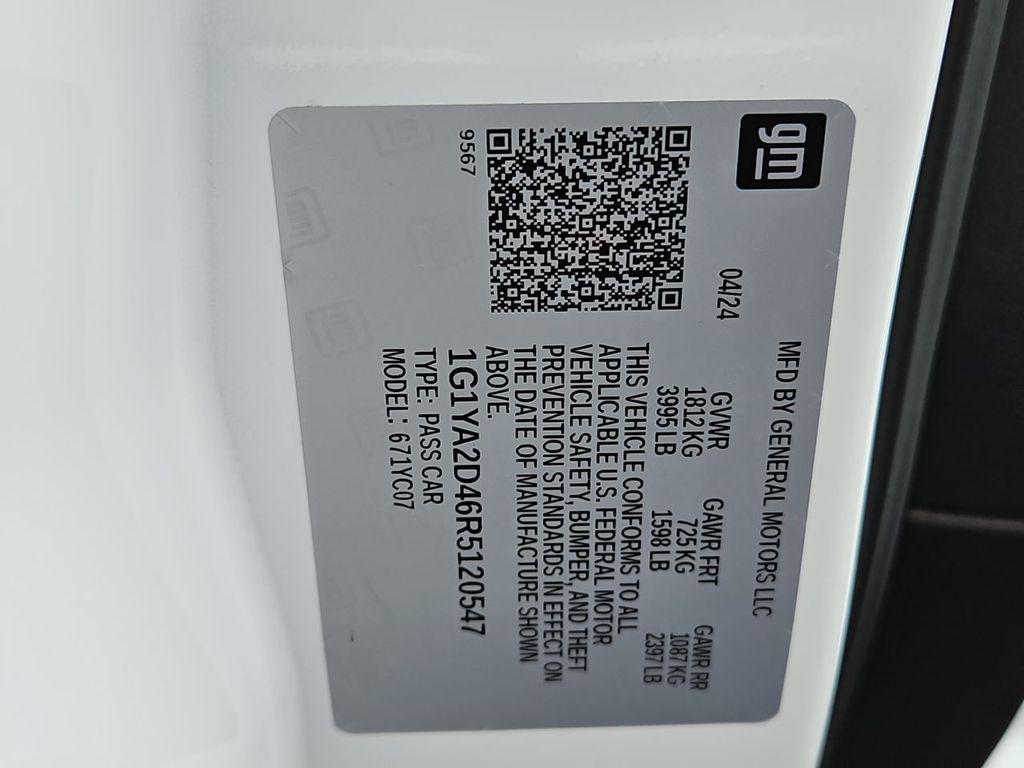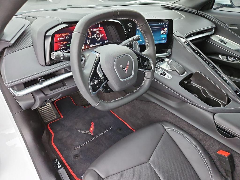 Arctic White 2024 Chevrolet Corvette Stingray 1LT RWD 8-Speed Dual Clutch 6.2L V8 10 Speakers, 4-Wheel Disc Brakes, 8-Way Power Driver Seat Adjuster, 8-Way Power Passenger Seat Adjuster, ABS brakes, Air Conditioning, Alloy wheels, AM/FM radio: SiriusXM, Auto High-beam Headlights, Auto-dimming Rear-View mirror, Automatic temperature control, Body-Color Removable Roof Panel, Brake assist, Bumpers: body-color, Compass, Delay-off headlights, Driver door bin, Driver vanity mirror, Dual front impact airbags, Dual front side impact airbags, Electronic Stability Control, Emergency communication system: OnStar and Chevrolet connected services capable, Four wheel independent suspension, Front anti-roll bar, Front Bucket Seats, Front Center Armrest, Front dual zone A/C, Front License Plate Bracket, Front Radiator Grille Screens (LPO), Front reading lights, Fully automatic headlights, GT1 Bucket Seats, Heated door mirrors, Illuminated entry, Leather Shift Knob, Leather steering wheel, Low tire pressure warning, Low-Profile Rear Spoiler & Front Splitter, Mulan Lthr Seating Surfaces w/Perforated Inserts, Navigation System, Occupant sensing airbag, Outside temperature display, Overhead console, Panic alarm, Passenger door bin, Passenger vanity mirror, Performance Data & Video Recorder, Power door mirrors, Power driver seat, Power passenger seat, Power steering, Power windows, Preferred Equipment Group 1LT, Premium audio system: Chevrolet Infotainment 3 Premium, Radio data system, Radio: Chevrolet Infotainment 3 Premium System, Rear anti-roll bar, Rear window defroster, Remote keyless entry, Speed control, Speed-sensing steering, Sport steering wheel, Steering wheel mounted audio controls, Tachometer, Telescoping steering wheel, Tilt steering wheel, Traction control, Trip computer, Turn signal indicator mirrors, Variably intermittent wipers, Voltmeter, Wheels: 19"" x 8.5"" Fr/20"" x 11"" Rr Bright Silver, Wheels: 19"" x 8.5"" Fr/20"" x 11"" Rr Satin Graphite.Recent Arrival! Odometer is 5688 miles below market average!Awards: * Car and Driver 10 BestCar and Driver, January 2017.