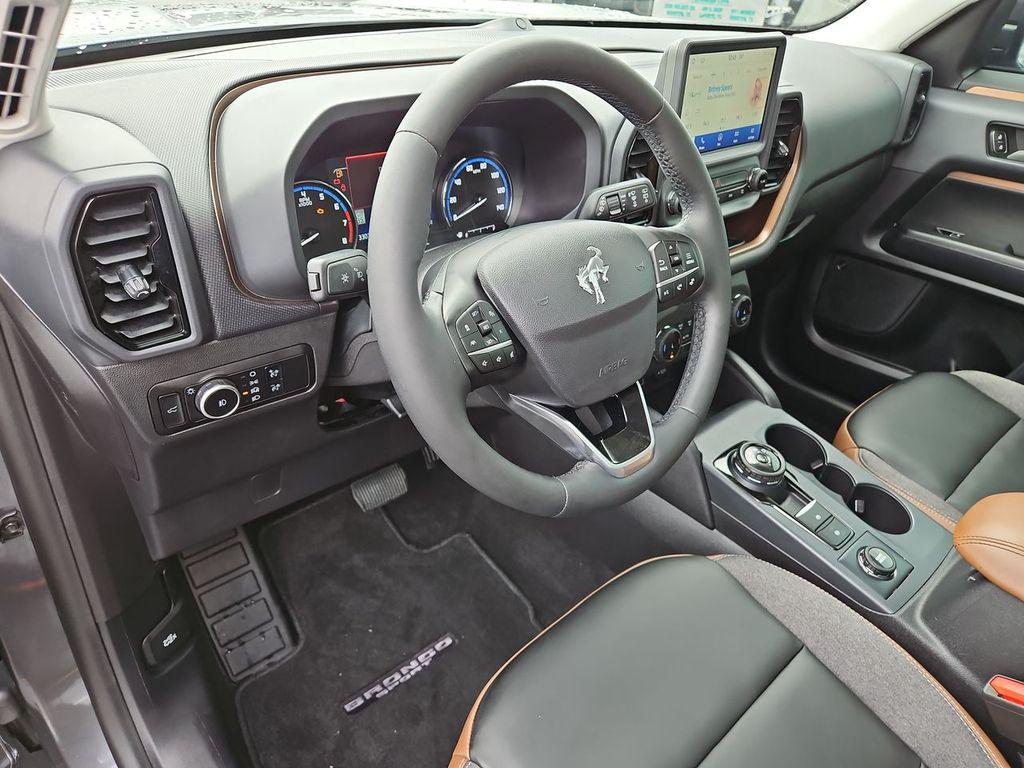 Gray Metallic 2024 Ford Bronco Sport Outer Banks 4WD 8-Speed Automatic 1.5L EcoBoost 3.80 Axle Ratio, 4-Wheel Disc Brakes, 6 Speakers, ABS brakes, Air Conditioning, Alloy wheels, AM/FM radio: SiriusXM, AM/FM Stereo, Auto High-beam Headlights, Auto-dimming Rear-View mirror, Automatic temperature control, Brake assist, Cargo Management System, Compass, Delay-off headlights, Driver door bin, Driver vanity mirror, Dual front impact airbags, Dual front side impact airbags, Electronic Stability Control, Emergency communication system: SYNC 3 911 Assist, Equipment Group 300A, Evasive Steering Assist, Ford Co-Pilot360 Assist+, Four wheel independent suspension, Front anti-roll bar, Front Bucket Seats, Front Center Armrest, Front dual zone A/C, Front fog lights, Front License Plate Bracket, Front reading lights, Fully automatic headlights, HD Radio, Heated door mirrors, Heated front seats, Heated steering wheel, Illuminated entry, Intelligent Adaptive Cruise Control w/Stop & Go, Knee airbag, Low tire pressure warning, Memory seat, Occupant sensing airbag, Outside temperature display, Overhead airbag, Overhead console, Panic alarm, Passenger door bin, Passenger vanity mirror, Power door mirrors, Power driver seat, Power Moonroof, Power passenger seat, Power steering, Power windows, Premium-Trimmed Heated Sport Contour Bucket Seats, Radio data system, Rain sensing wipers, Rear anti-roll bar, Rear Parking Sensors, Rear reading lights, Rear seat center armrest, Rear window defroster, Rear window wiper, Remote keyless entry, Security system, SiriusXM, Speed control, Speed-sensing steering, Speed-Sensitive Wipers, Split folding rear seat, Steering wheel mounted audio controls, SYNC 3 Communications & Entertainment System, Tachometer, Tech Package, Telescoping steering wheel, Tilt steering wheel, Traction control, Trip computer, Universal Garage Door Opener (UGDO), Variably intermittent wipers, Voice-Activated Touchscreen Navigation System, Wheels: 18"" Ebony Black-Painted Aluminum, Wireless Charging Pad.25/29 City/Highway MPG